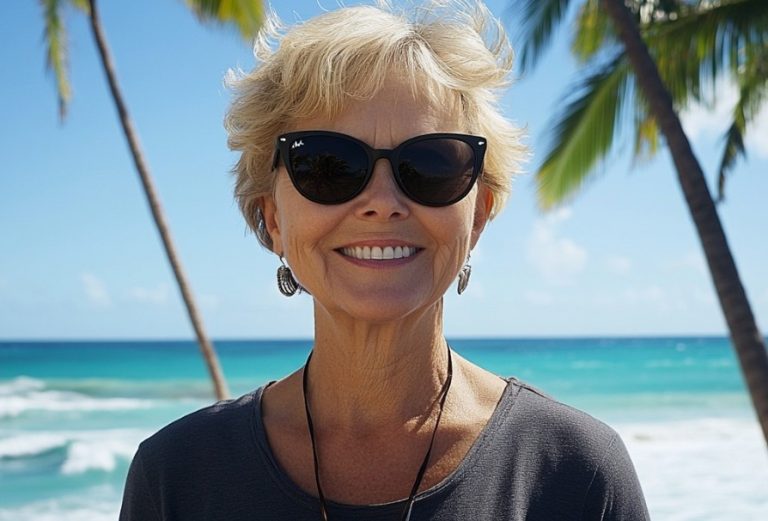 Новая публикация, сделанная час назад: Светлана Анатольевна с коктейлем на пляже, за её спиной — лазурное море и яркое турецкое солнце.