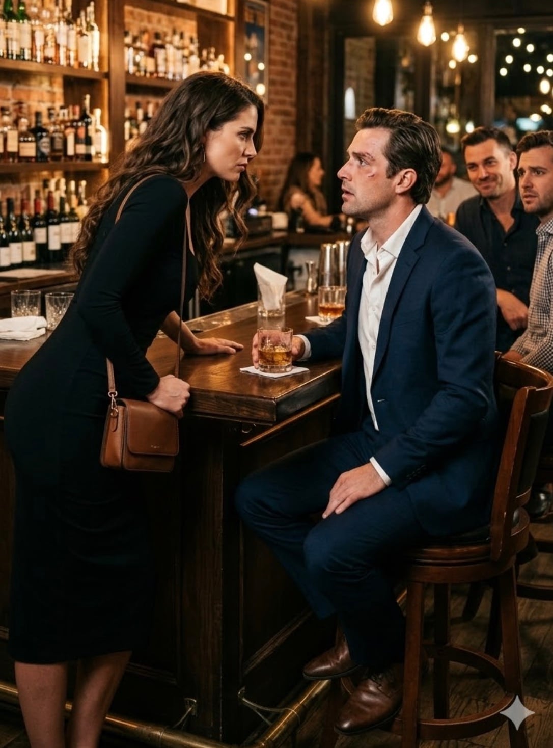 На секунду за столом повисла тишина—та самая неловкая, которую не могла заглушить даже музыка в баре Малаcанья. Серхио нервно хихикнул. Диего, лучший друг Хавьера со школы, отвёл взгляд, смущённо.