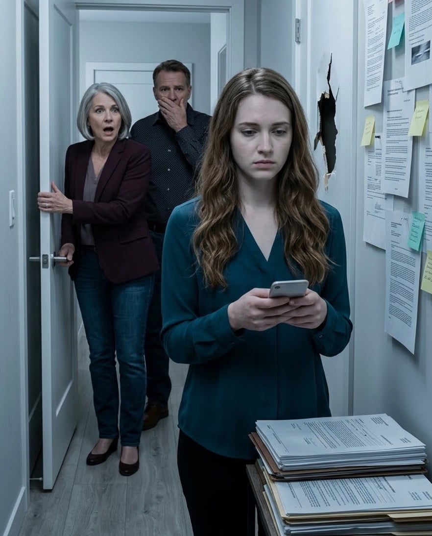Итан вошёл глубже в комнату, оглядел стены так, как будто впервые увидел всю нашу жизнь, превращённую в улики. Камера зафиксировала каждую деталь: пот на его лбу, как опущены его плечи, как Линда медленно отступала от стола, будто сама правда могла её сжечь.