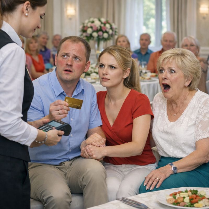 Олег кивнул, всё ещё сияя, и потянулся к сумке Марины. Она не шевельнулась. Он достал её кошелёк, вытащил карту, протянул. Администратор приложил к терминалу. Пауза. Короткий сухой писк.