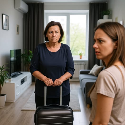 Свекровь стояла на пороге с большим чемоданом и сумкой через плечо. Лицо её было решительным, даже торжественным.